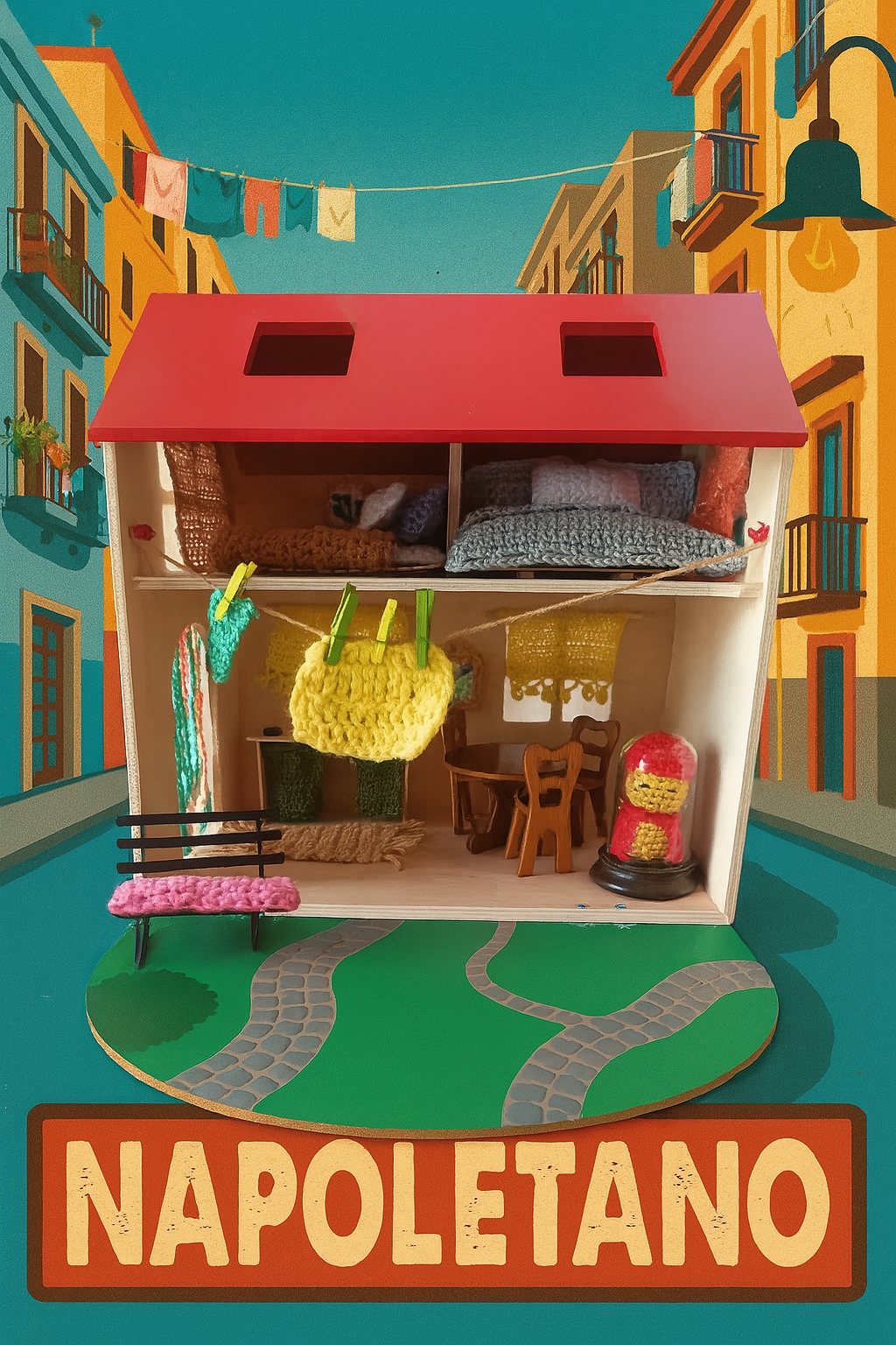Ogni punto basso, ogni maglia alta, ogni nodo è un piccolo omaggio alla bellezza che ci circonda: il Vesuvio che veglia, i vicoli che cantano, le feste e tante risate. Le mie creazioni non sono solo oggetti: sono frammenti di memoria, carezze di tradizione, sussurri di femminilità e resistenza.